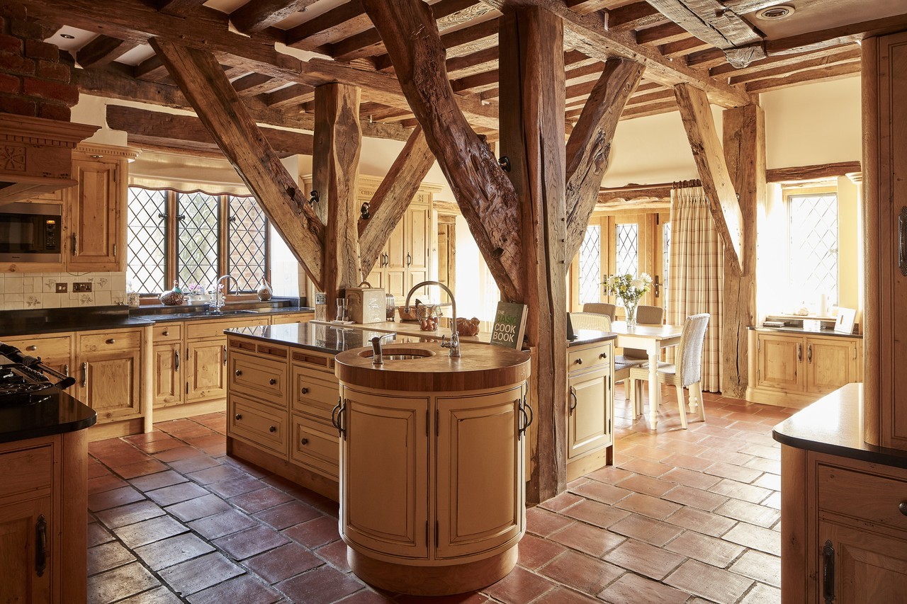 今回の画像はインテリアでカントリー調のキッチンです。床には素朴な手作り感のあるテラコッタ、キッチンバックにはハンドメイド調のタイル、ポイントで柄タイルが貼られています。