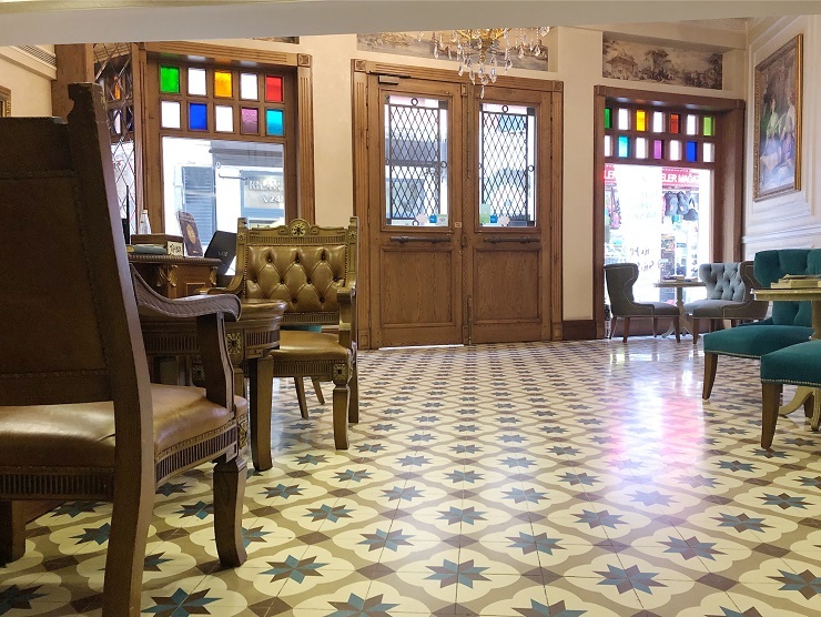 窓にあしらったステンドガラスや柄タイル・家具調度品、なかなか良い感じで一休みしたいと思わせる雰囲気です。